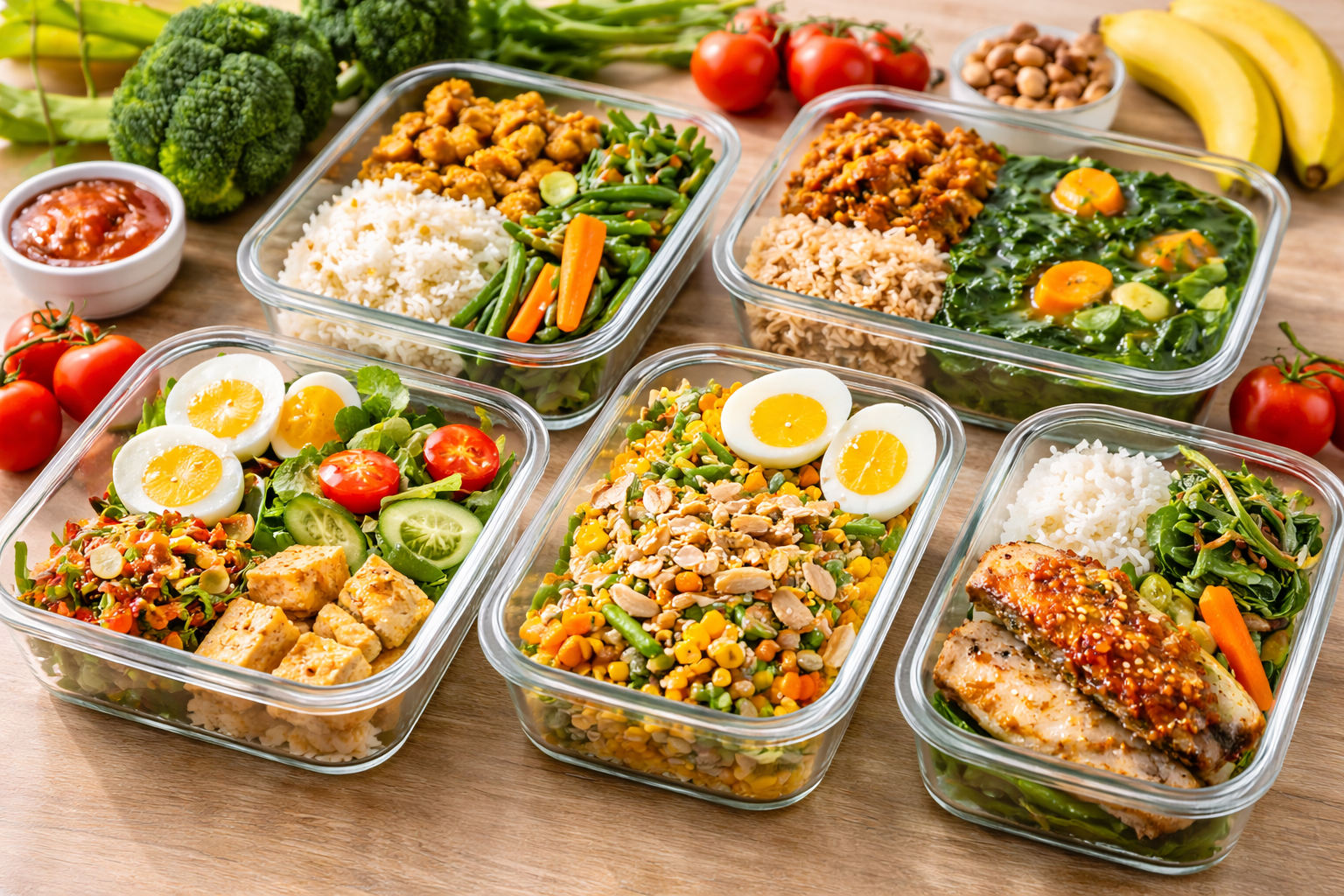 Meal prep tidak harus rumit. Anda bisa “setengah jadi”, lalu finishing cepat setiap hari.